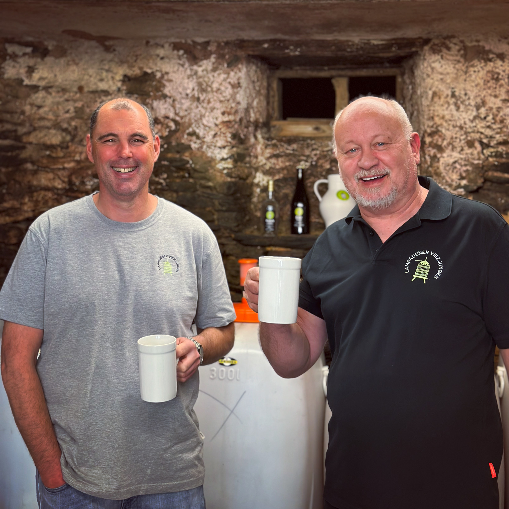 Mit der Zeit wuchs nicht nur das Interesse, sondern auch unser Sortiment. Neben dem klassischen Apfelviez bieten wir heute auch Birnenviez, naturtrüben Apfelsaft, Cider und unseren beliebten „Glühviez der Lampadener Viezjungen“ an – über den zuletzt auch der SWR in einem Fernsehbeitrag berichtete.